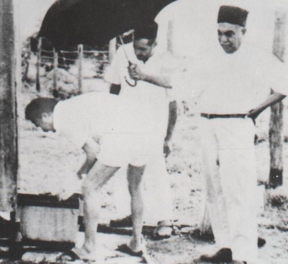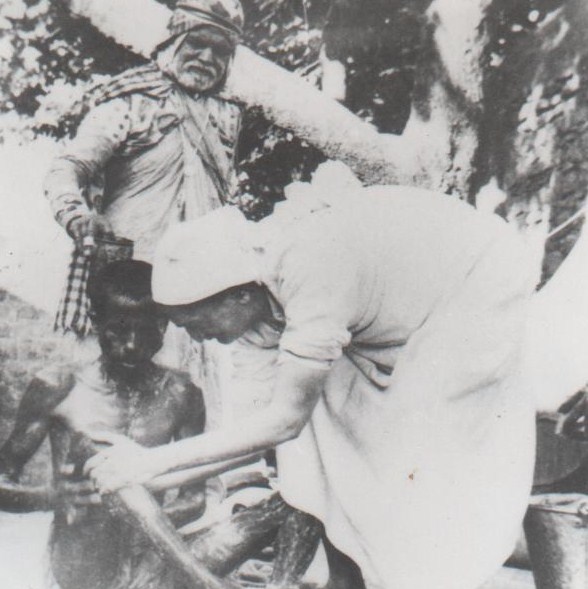 l to r: Meher Baba washing a leper, Pandharpur 1954; cleaning a toilet at Meherabad, 1938 |