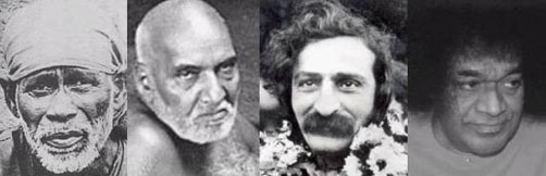 l to r: Shirdi Sai Baba, Upasani Maharaj, Meher Baba, Sathya Sai Baba. These entities have been grouped under the misleading sectarian phrase "Sai Baba movement," an error obscured by Wikipedia suppression of data. |